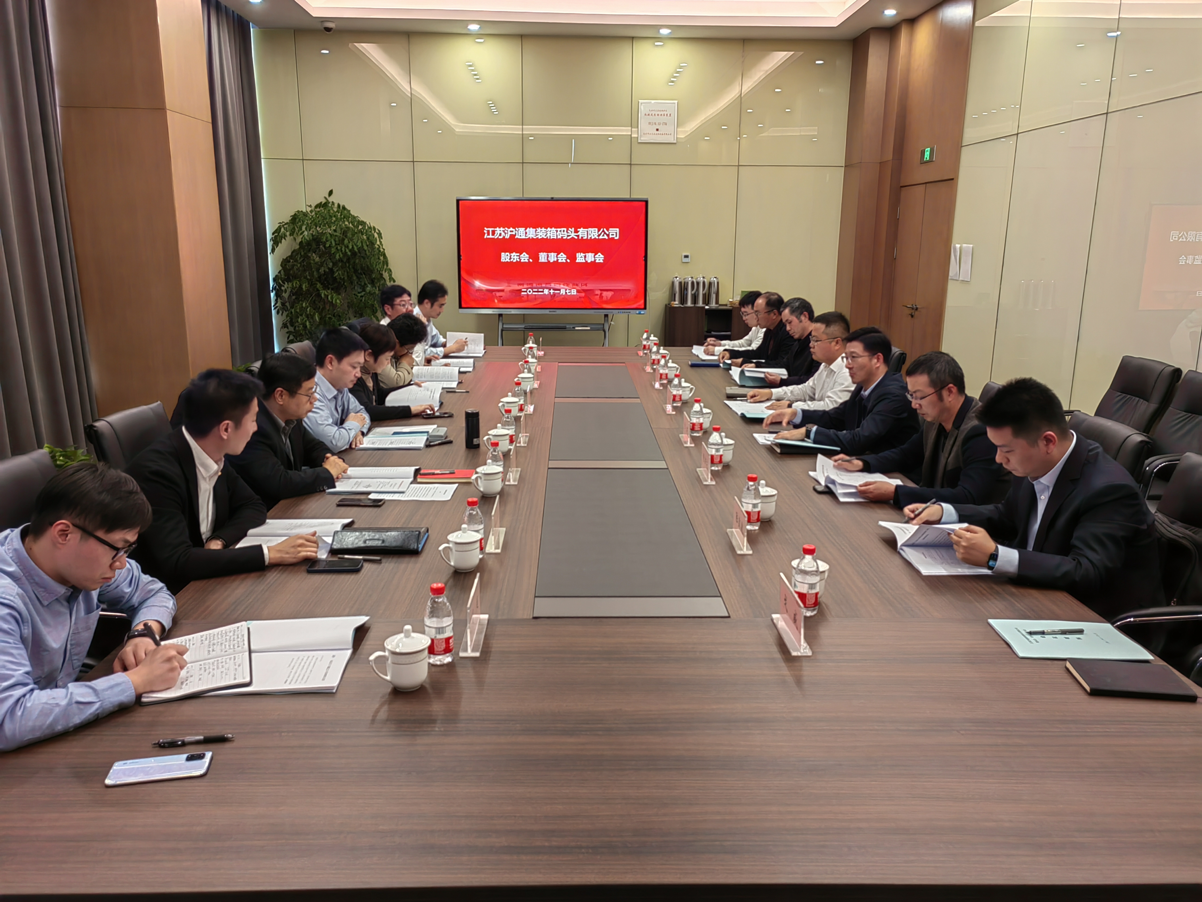 為進一步推動通州灣新出海口呂四起步港區集裝箱碼頭健康運營,加速三方合資公司治理體系建設,11月7日,江蘇滬通集裝箱碼頭有限公司第一次股東會、一屆一次董事會、一屆一次監事會會議在公司七樓會議室成功召開。上港集團、江蘇省港口集團、南通港口集團股東代表出席會議,公司全體董事、監事參加會議,主要高管列席會議。