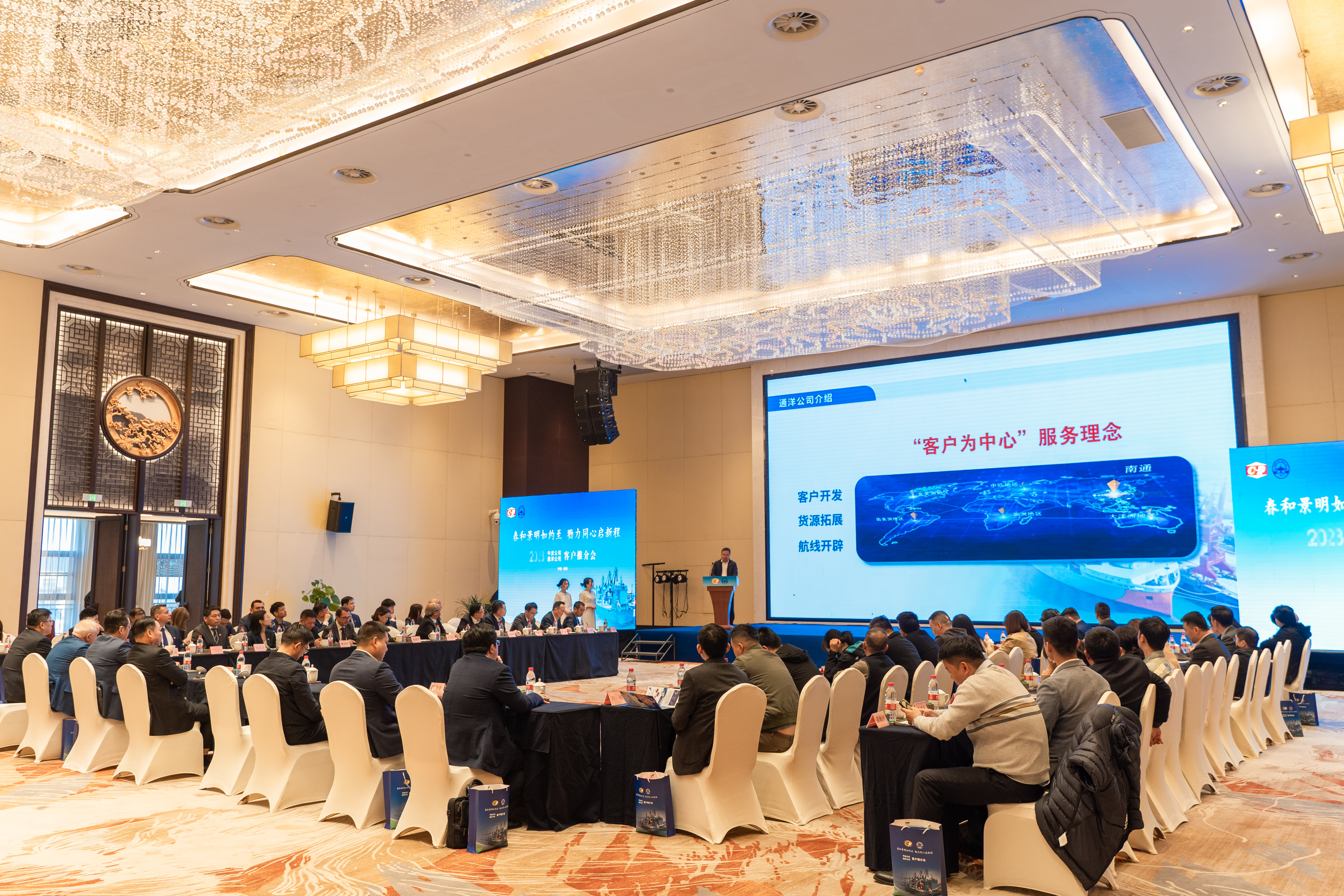 3月28日,以“春和景明如約至 戮力同心啟新程”為主題的中波輪船股份公司、南通通洋港口有限公司客戶推介會在啟東百源豪生大酒店舉辦。啟東市市委常委王裕兵,中波公司副總經理邱波,中波公司總經理助理周菁徠,南通港(港口)集團黨委副書記、總經理、副董事長劉建,南通港(港口)集團黨委委員、副總經理、通洋公司董事長呂東芹出席會議,特變電工、南通中集、金風國際等單位近80名來賓參加了會議。