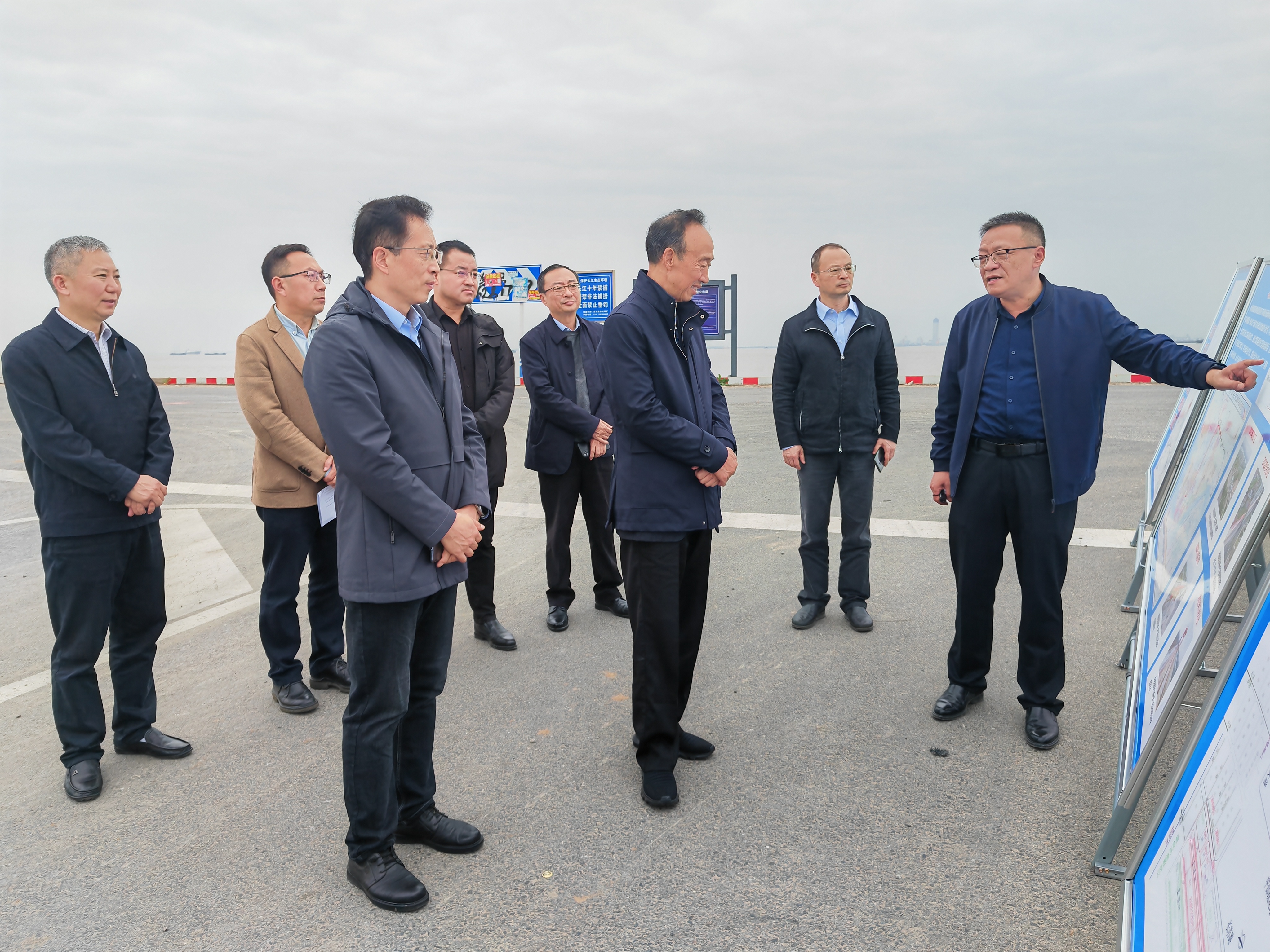 11月25日,江蘇省政協(xié)原副主席范燕青等一行調(diào)研南通港通海港區(qū)至通州灣港區(qū)鐵路專用線一期工程,省鐵運(yùn)營公司黨委書記、董事長趙瑋,副總經(jīng)理戴欣,南通港(港口)集團(tuán)副董事長崔劍,通海鐵路公司黨支部書記、董事長顧焱華,總經(jīng)理鎮(zhèn)杰,黨支部副書記邵仲華,新江海公司黨支部書記、副董事長陸朝暉等陪同調(diào)研,圖為通海鐵路公司負(fù)責(zé)人介紹工程項(xiàng)目基本概況、區(qū)位優(yōu)勢、發(fā)展定位及建設(shè)進(jìn)展等相關(guān)情況。